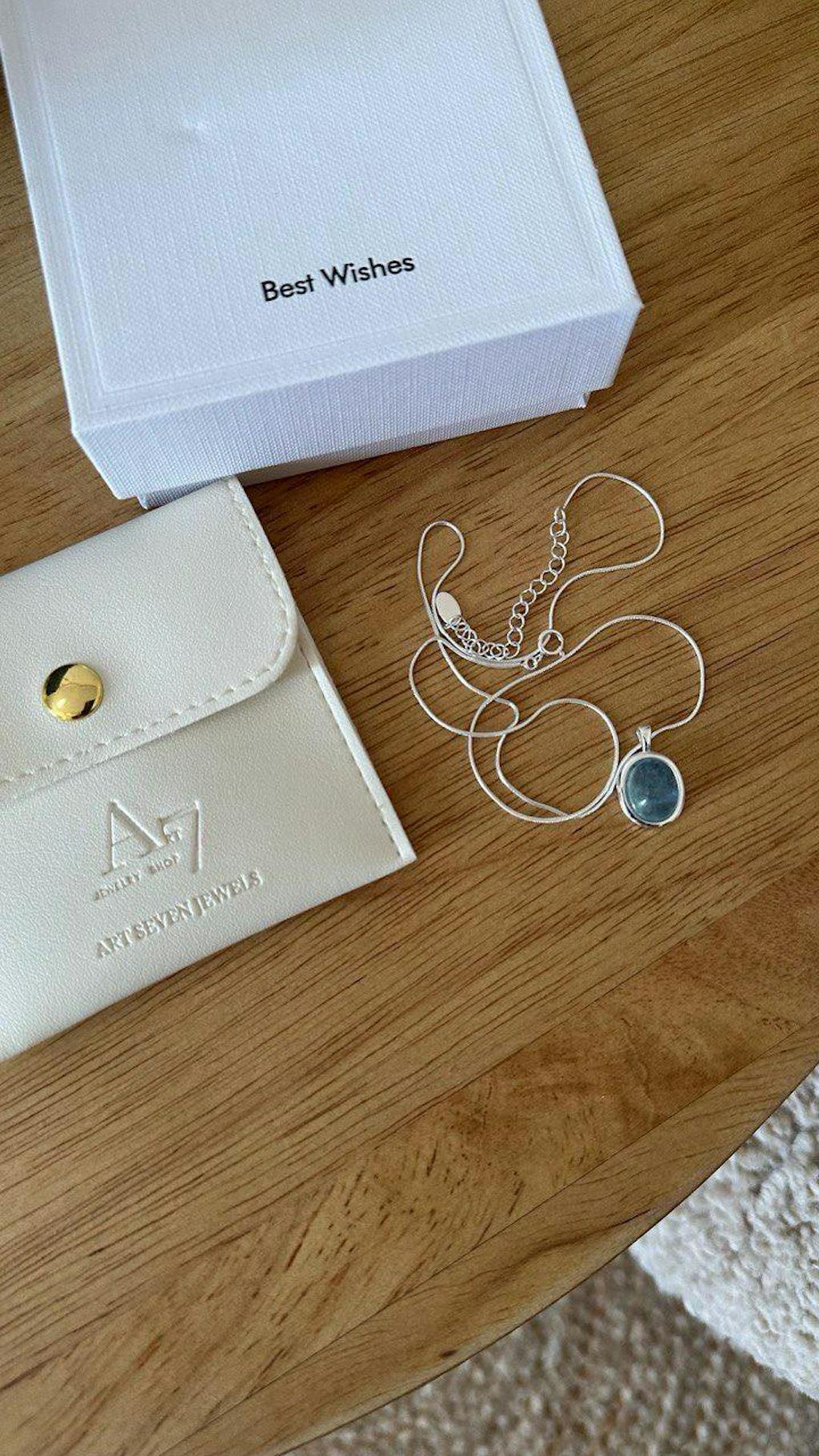 Material: s925 sterling silver with blue aquamarine (Please take note that aquamarine is a some transparent stone that exhibits varying shades of red depending on its position. As the necklace is crafted with all-natural stones, each one may have slight differences.)