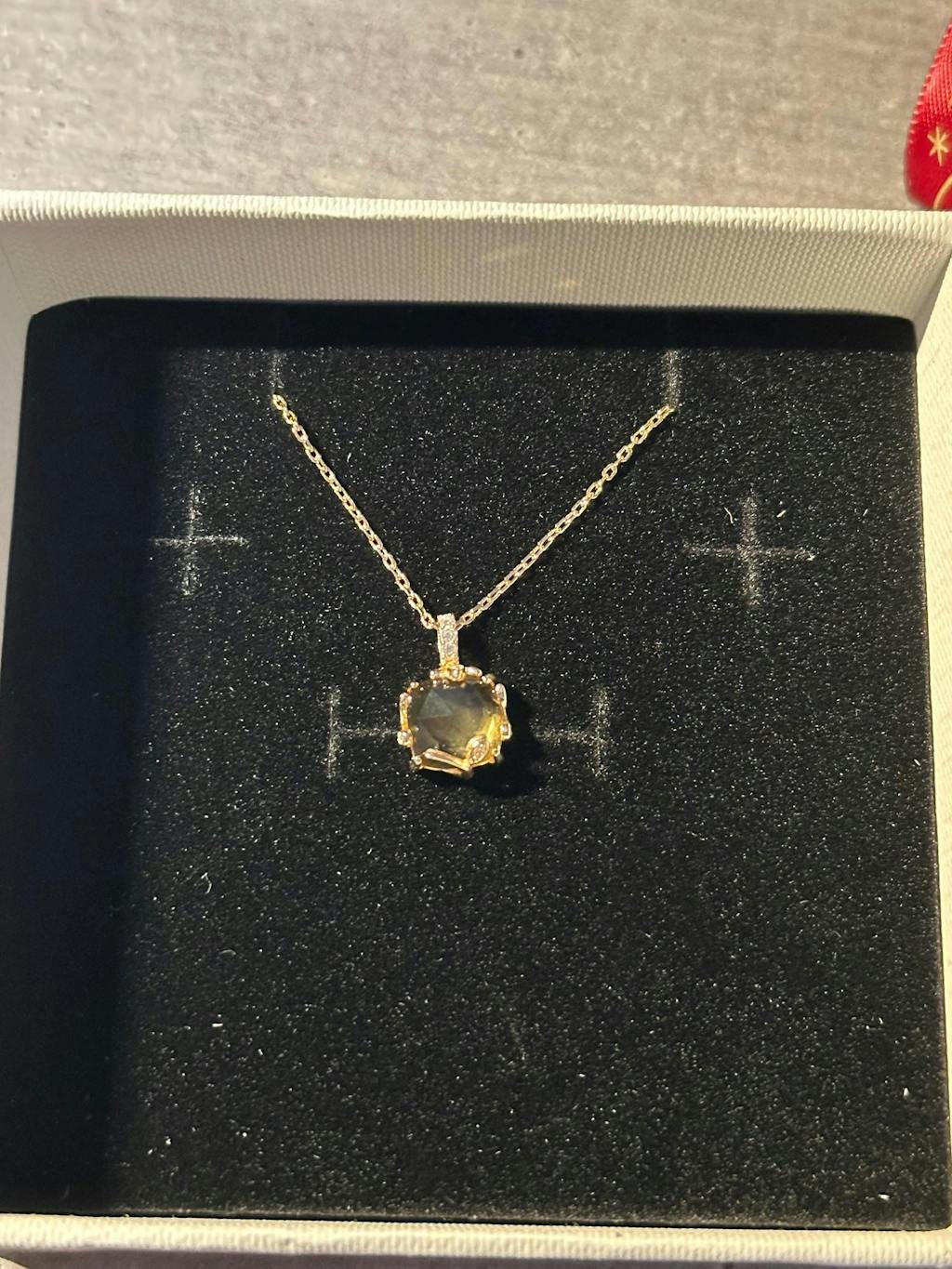 This exquisite necklace features a dainty citrine gemstone set in a unique design inspired by nature, with delicate branches and leaves embracing the stone. The golden hue of the citrine beautifully complements the intricate details of the setting, creating a piece that is both elegant and timeless. Crafted in high-quality sterling silver, this necklace is perfect for adding a touch of sophistication to any outfit. It makes a thoughtful gift for her, whether it's a special occasion like Mother's Day or just a way to show someone you care