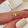 Dainty Peridot Necklace – a blend of elegance, simplicity, and deep meaning. Crafted delicately with attention to detail, this necklace showcases a radiant Peridot pendant that captures the vivacity of its green hues, reminiscent of nature's freshness and the gentle play of sunlight on morning dew. More than just a gemstone necklace, it stands as a symbol of light, protection, and healing. Perfectly set in a shimmering silver setting, the necklace resonates with grace suitable for everyday wear or special occasions. As the birthstone of August, this piece becomes more than jewelry; it becomes a heartfelt sentiment. Whether you're treating yourself or searching for that perfect gift for her, this Peridot birthstone jewelry encapsulates love, friendship, and the glow of cherished memories. Envelop her in the charm of the gem of the sun, gifting not just a necklace, but a keepsake of moments and milestones.