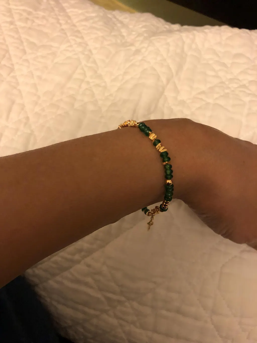 Indulge in the luxurious allure of our 18k gold emerald beads bracelet, an exquisite statement piece designed to captivate. Crafted with meticulous attention to detail, this bracelet features stunning emerald beads interspersed with gleaming gold-filled beads, creating a harmonious blend of elegance and sophistication. Each emerald bead radiates natural beauty and charm, showcasing rich green hues that symbolize vitality and renewal. The addition of gold-filled beads adds a touch of opulence and warmth, elevating the bracelet to new heights of glamour. This bracelet is more than just a piece of jewelry; it's a timeless gift that celebrates femininity and grace. Whether for a special occasion or simply to show your appreciation, it's the perfect gesture to express love and admiration for the remarkable women in your life.